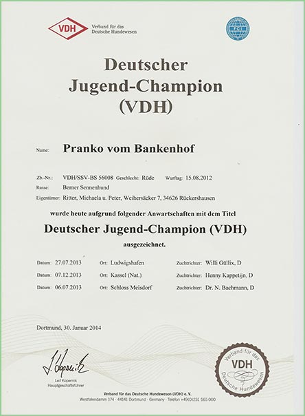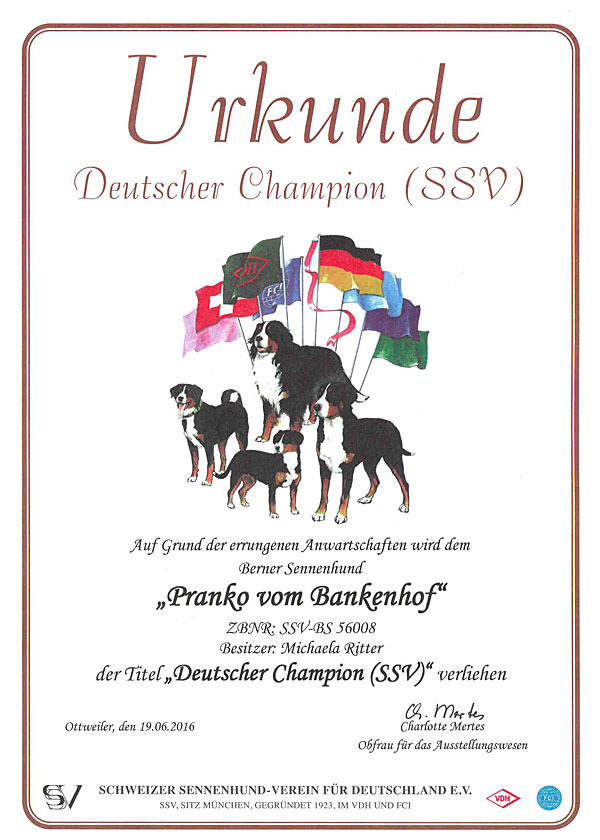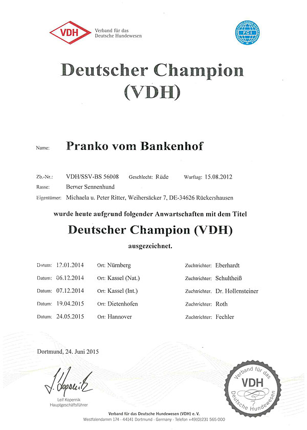 bin ich stolzer Deutscher Champion im VDH und seit 19. Juni 2016